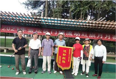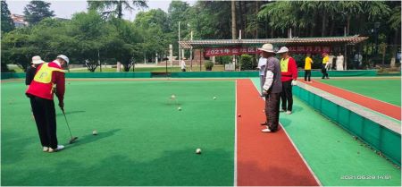 9月16日,风和日丽,金坛区门协在风景优美的华罗庚公园举办了流动红旗月月赛。 前段时间,为了做好防疫防控工作,门球场关闭,门球爱好者们一直心痒痒的,无奈只好耐心等待。终于等到9月7日门球场开放,球员们压抑的情怀终于释放了,他(她)们 又扛起球杆,身穿运动服,迈着矫健的步伐,在绿茵茵的球场上,挥杆击打,清脆的球声,伴着爽朗的笑声,回荡在公园的上空。 经过一天的角逐,老干一队获得了冠军,人大队、市供销一队、军休队获得二至四名。(洪丽霞)