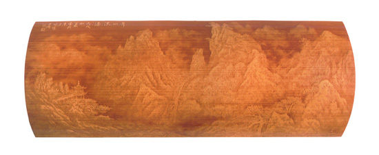20多年前,启功先生曾赠与徐秉方一首诗:“四百年来论竹人,三朱两沈记犹新。于今奕世传精诣,喜见毗陵步后尘。”启功先生不仅在诗中表达了自己对竹刻艺术的喜爱,也对徐秉方竹刻创作寄寓了厚望。如今20多年过去了,我们可以看到秉方先生的留青竹刻,特别是表现山水题材的作品,真是于清雅俊秀内见含蓄蕴藉,层次丰富中寓变幻莫测,显示出了先生深厚的美学修养与高超的艺术功力。可以说,先生的竹刻造诣,超越了他的父辈,“青出于蓝而胜于蓝”了。