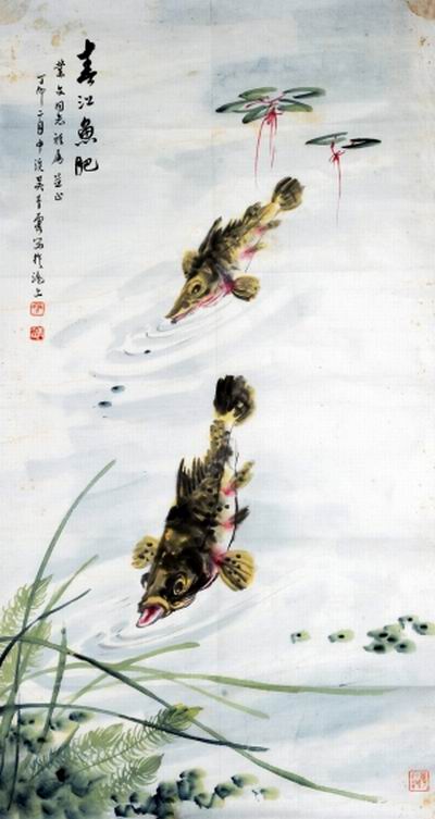 其实,吴青霞先生从事书画创作的人生是艰苦的。她自幼师从其父(吴仲熙,著名收藏家、鉴赏家),并深得其精髓。19岁时,离开常州去上海,靠勤奋和天赋,站稳了脚跟。这在上海女画师中是很少见的。解放后,被吸纳为上海中国画院首批画师。在她的创作中,山水、花鸟、人物各类题材都涉及,尤以画鲤鱼见长,以鱼为师,得形入神,有“鲤鱼吴”的雅称,又善绘芦雁,洒脱精准,得“江南水阔,漠北沙寒”的气象。在画院,吴老良好的人际关系,也是出了名的。德高望重、德艺双馨的人品和画格,使她获得上海市文联委员、上海市美协理事、上海师大教授和意大利欧洲学院院士等一连串荣誉称号。