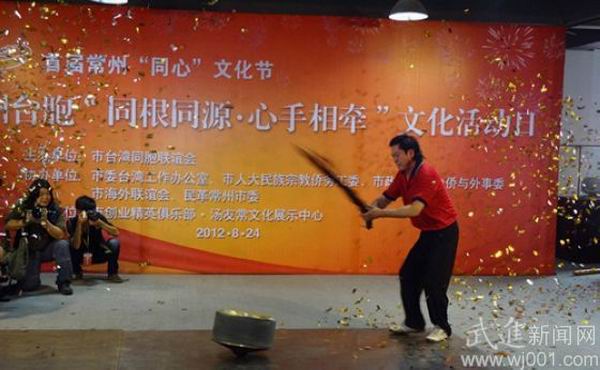 汤友常生于1953年,常州市新北区孟河镇汤家村人,是世界雕刻之王,世界陀螺之王,他的雕刻作品和打陀螺,共获得41项大世界吉尼斯纪录。他年轻时参军,26岁当上营长,他体格健硕自创“狮吼功”,退役后选择回归乡野潜心艺术创作。