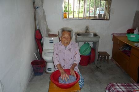 老人一直过着简朴的生活,从不追求奢侈。她一生很勤劳,心地善良,生活上很少为些小事生气,为人处事方面显得十分大度。无论在工作和生活中,都保持心胸开阔、淡泊名利、乐观豁达,不与人计较得失,这就是她常常念叨“待人要有宽厚之心”。老人没有出嫁前不下地干活,因为是小脚,在家做家务。17岁嫁入周家,帮大队养蚕。到90岁还自己做饭。现在,她每天坚持自己洗澡、洗衣服,生活自理。