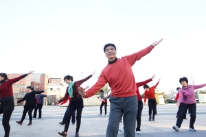舞友们三三两两到齐,是一群女嬷嬷,大的60多岁,小的30多岁。看到袁福仁,大家围上来,嘻嘻哈哈打趣一阵,等到他按下放音键,大家便跟着舞动起来。