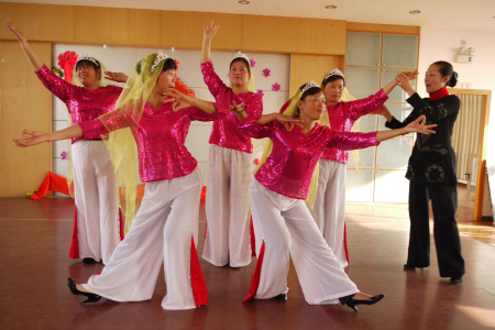 要给学生一杯水,老师要有一桶水。为此,陆筱琴来到市文化馆全民艺术普及课堂报名学起古典舞、民族舞。2年多来,她跟着朱枭倩等老师系统地学习了舞蹈理论和表演技巧。“真的是学海无涯、艺无止境。”在老师们的系统教学中,她舞艺精进,先后学会了中式戏曲古典舞,新疆、傣族、藏族、蒙古等民族舞。其间,她更是主动请缨,争做群众文化志愿服务活动的“排头兵”。她把这些新学的舞教给社区舞蹈爱好者。现如今,精湛的舞技,让陆筱琴常年有着100多名老少粉丝跟着她练舞。近年来,她带领她们每年参加群众文化活动周、送戏下乡、送戏进社区等文艺演出20多场次。在社区、在乡村、在部队营房、在敬老院的舞台上,都留下了她们美丽的身影。