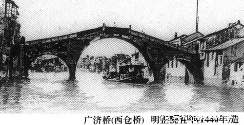 这三座桥的东边一座是座黄石花岗岩砌成的单孔石拱桥,叫“新坊桥”,古扑而凝厚,优雅而壮观。提起石拱桥,常州多的是,最有名的三孔石拱桥叫“广济桥”又叫“西仓桥”,原来在大仓路口横跨京杭大运河,在运河疏浚时,整体搬迀至东坡公园,在东坡公园三面环水的半岛和运河中的半月岛之间,照原样用原来的石材、石料重新建起了“广济桥”,如今“三河三园水上游”将从这里开始。原来在常州城区南大街南口也有一座有名的单孔石拱桥叫“弋桥”因城市道路扩建改成水泥桥,石拱桥整体搬迀至红梅公园文笔塔塔园景区,更名为“云影桥”,形成一道靓丽新景观。