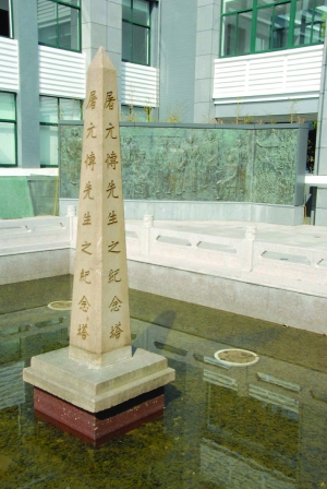 屠元博纪念碑位于省常中校史馆前,烛台形金山石石塔,高约3米,塔身为单尖柱状,四棱,每面均阴刻“屠元博先生之纪念塔”。纪念塔建于屠元博逝世之年,即民国八年(1919年)。1979年省常中于“科学馆”前重建,借以纪念他建校的功绩。2007年省常中建校百年庆典时移至今址。