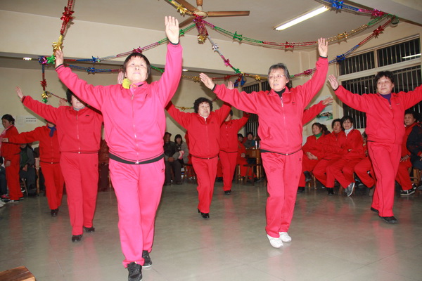 大年初三,常州市天宁区青龙街道常青中心村举行了一次别开生面的“全民健身 共享欢乐”新春联谊活动。活动的内容有:一、舞蹈《迎客来》;二、击鼓传花;三、体育活动比赛;四、集体演唱《没有共产党就没有新中国》。