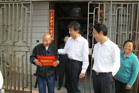 家住瓦窑东村的102岁老人潘听苟喜滋滋地接过了2000元慰问金,颤抖地握住工作人员的手说:“我活了100多岁,现在政府还没忘记我,真的很感动!”